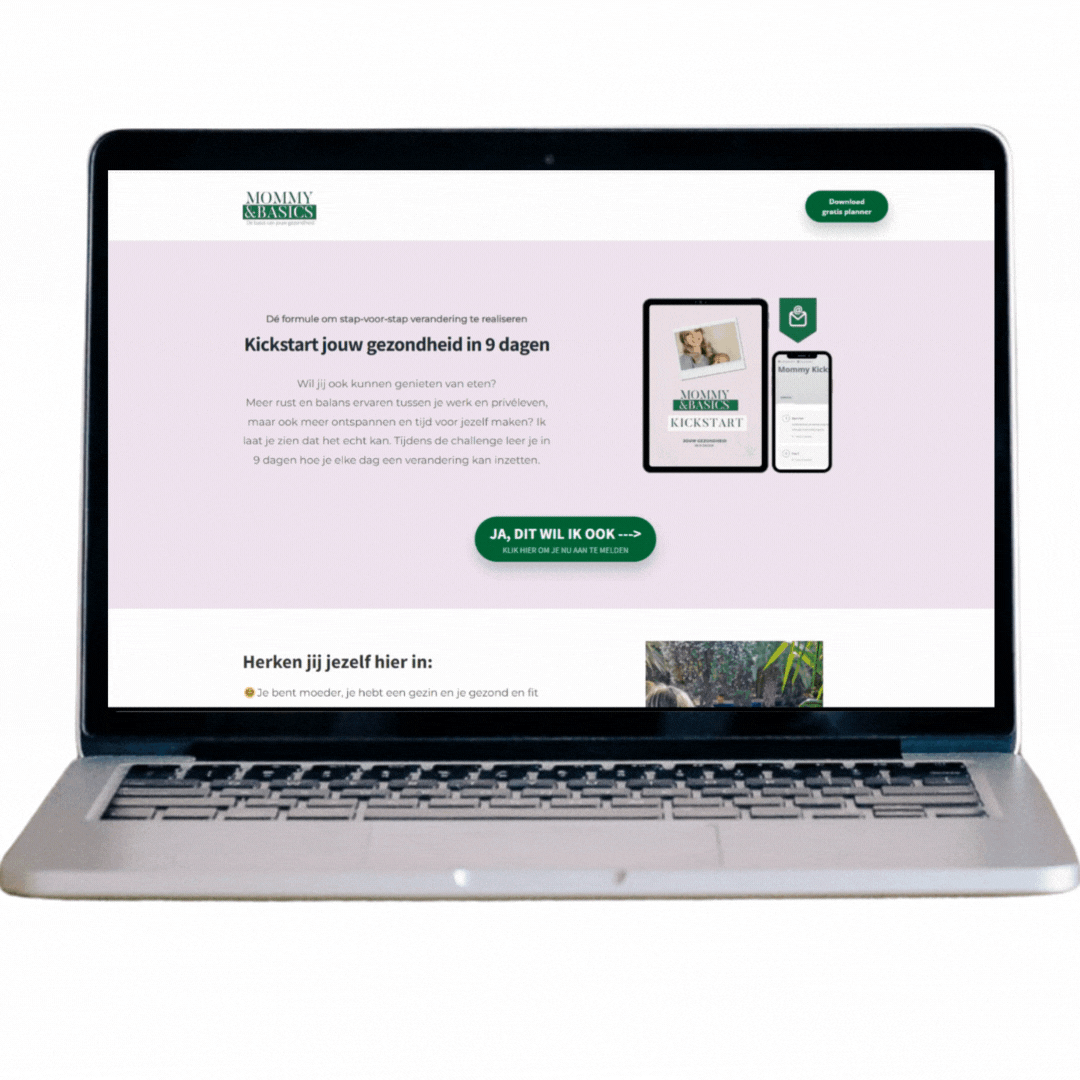 Mommyandbasics biedt coaching & ondersteuning aan moeders. Ik heb hiervoor een strategie uitgewerkt een weggever ontwikkeld en aanbod voor het instapproduct, een challenge bedacht.